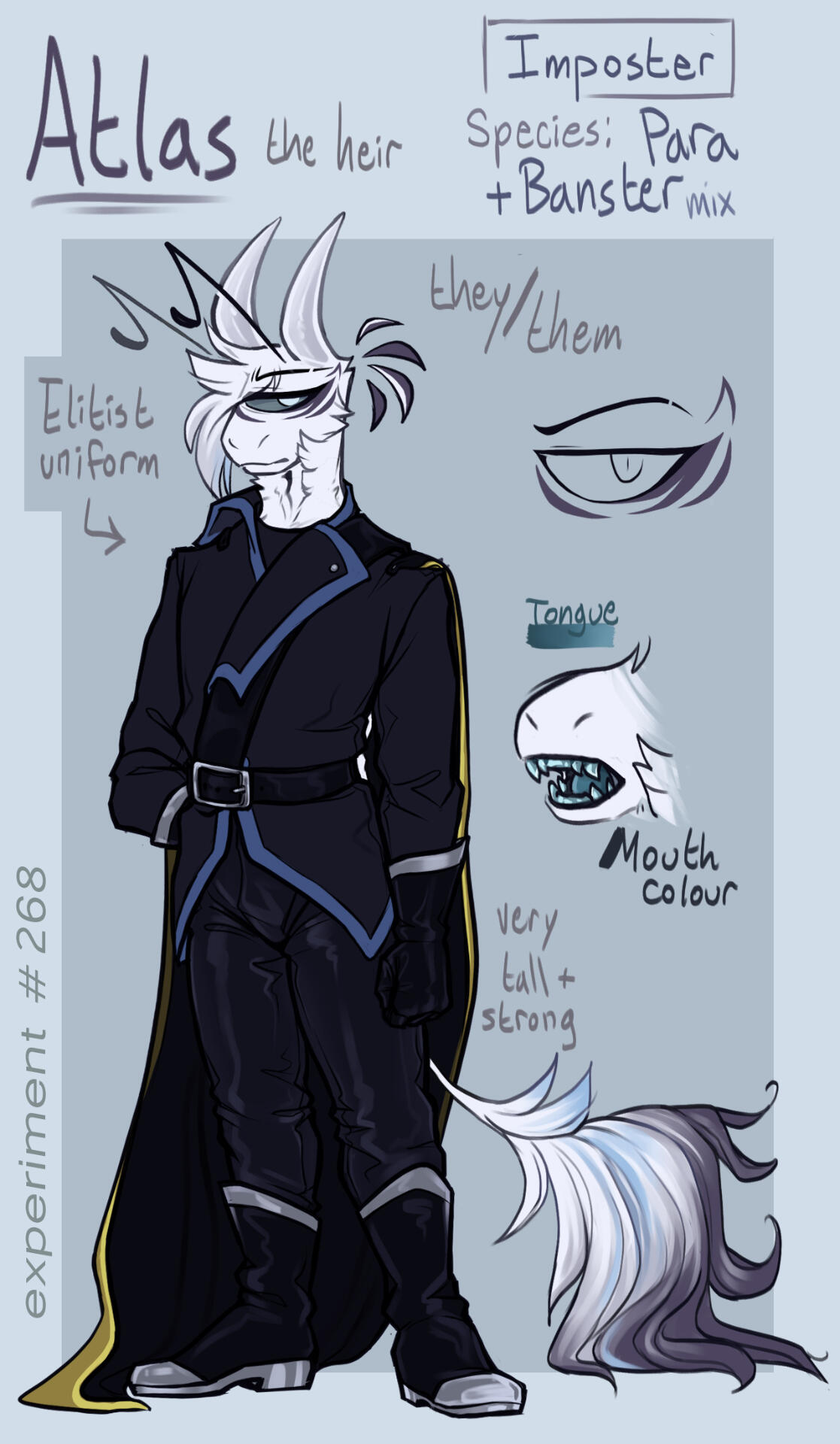 Funding countless experiments on making a near flawless specimen, a new child to call their own; to put all their time and energy in. After what felt like never-ending failures, experiment #268 was the one that had finally survived. A careful mix of Crewch, Para imposter, and Banster imposter genes and makeup, Atlas was created, and thrived.